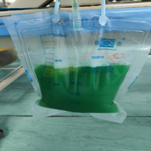The patient is 83 years old and he is male. His chief complaint was that he had trouble breathing for 2 days. He had cirrhosis of the liver for 20 years. He was hospitalized for treatment due to liver cirrhosis. He was not infected with the virus that caused liver damage. The cause of liver cirrhosis in this patient was unclear. He received medication to promote liver cell production. His liver function has been deteriorating year by year. His temperature was 36 ℃. His heart rate was 189 beats per minute and his breathing rate was 30 beats per minute. His blood pressure was 121/77 mmHg. His saturation pulse oxygen was 89%. The sound of his breathing in his right lung was gone. The computed tomography scan showed no bilateral lung infection. The computed tomography scan of the patient showed massive right pleural effusion, cirrhosis, and peritoneal effusion. The blood test results of patient showed decreased serum albumin and thrombocytopenia (Table 1). A drainage tube was inserted into the patient’s right pleural cavity. The pleural effusion was pale yellow (Figure 1). The pleural effusion was not infectious (Table 2). The volume of pleural effusion was about 1,000 mL per day. We suspected that the patient had developed hepatic pleural effusion. The daughter of the patient refused thoracoscopy examination. We stained the peritoneal fluid with methylene blue injection. The ultrasound was used to measure the ascites volume and select the puncture site. We injected 20 mg methylene blue injection (H32024827, Qihua Pharmaceutical Group Co., Ltd., Jinan, China) into abdominal cavity of the patient (Figure 2). Two hours later, the pleural effusion was stained light blue (Figure 3). It indicated that peritoneal fluid has entered the chest cavity. Based on this, we speculated that the patient had a diaphragm rupture. The patient was diagnosed with hepatic pleural effusion, respiratory failure, cirrhosis, and ascites. The patient had a large amount of pleural effusion and decreased blood volume. We injected fresh frozen plasma and human serum albumin to the patient. We used antibiotics to prevent infections of the patient. We provided nutritional treatment to the patient. Although various methods were used to reduce the pleural effusion, the patient died of liver failure after 62 days of hospitalization. The patient did not experience any adverse or unexpected events due to the injection of methylene blue.