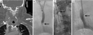 For ostial lesions, such as the CCA treated in the second patient of our series, we recommend balloon expandable (versus a self-expandable) stents for the more precise deployment, which is required when treating ostial lesions. In the same scenario, we also prefer using covered over bare metal stents, based on an increasing body of literature that supports a longer primary patency rate with covered stents (11-13).