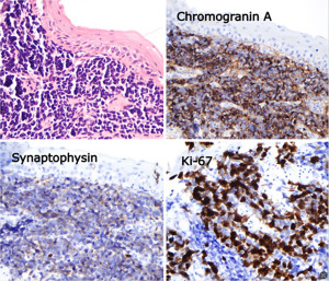 • GI neuroendocrine neoplasms (NENs) are typically indolent; however, small cell variants represent a rare, poorly differentiated subset with markedly aggressive biology and poor prognosis.