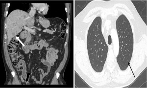 | Day 0 (presentation) | CT scan revealed extensive gastrointestinal involvement and metastatic pleural effusions | – | – |