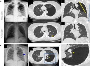 Cite this article as: An J, Long M, Jiang Y, Jin Y. Concomitant a giant pulmonary bulla on the left lower lobe and hamartoma successfully treated by video-assisted thoracoscopic pulmonary wedge resection. AME Case Rep 2017;1:2.