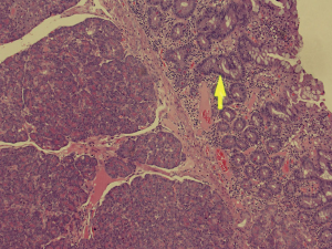 The histological morphology of EP tissue can be classified according to Heinrich’s criteria, proposed in 1909 (9). Type 1 EP tissue contains cells of exocrine glands, excretory ducts and islets of Langerhans; type 2 contains only excretory glands and excretory ducts; type 3 contains only excretory ducts (8). In 1973, Gasper-Fuentes proposed a modified version of the Heinrich criteria, comprising of four types of EP tissue: