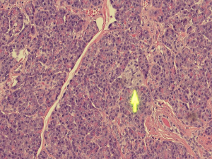 Histopathological analysis of the specimen revealed complete excision of the mass, which was reported to be benign pancreatic tissue, showing both endocrine and exocrine elements (islets of Langerhans, pancreatic acini, and pancreatic ducts) (Figures 4-9). No atypical features were seen and there was no evidence of malignancy.